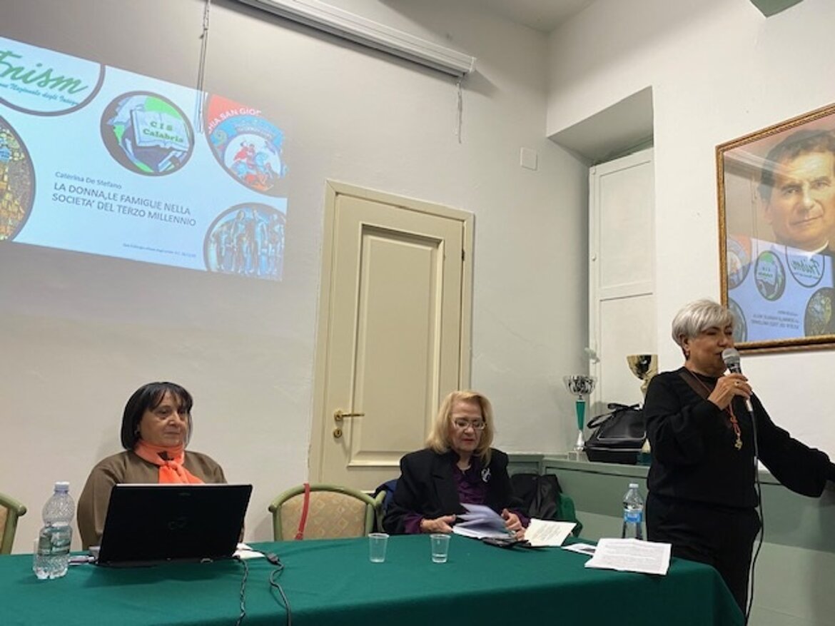 Il Centro Internazionale Scrittori della Calabria, la Chiesa degli Artisti di Reggio Calabria, e la Fnism, sezione insegnanti di Reggio Calabria, mercoledì 26 novembre 2025, presso la sala San Giorgio della stessa chiesa, hanno promosso la conferenza: “La donna, le famiglie nella società del terzo millennio”. Ha introdotto i lavori Loreley Rosita Borruto, presidente del Cis della Calabria, sono intervenute: Fortunata Cristiano Ippolito, presidente della Fnism sezione insegnanti di Reggio Calabria, Caterina De Stefano, psichiatra, psicoterapeuta, già direttore del dipartimento delle Dipendenze ASP di Reggio Calabria. La donna nel terzo millennio è stata sempre più valorizzata, ed è sempre considerata come risorsa indispensabile per il progresso sociale.