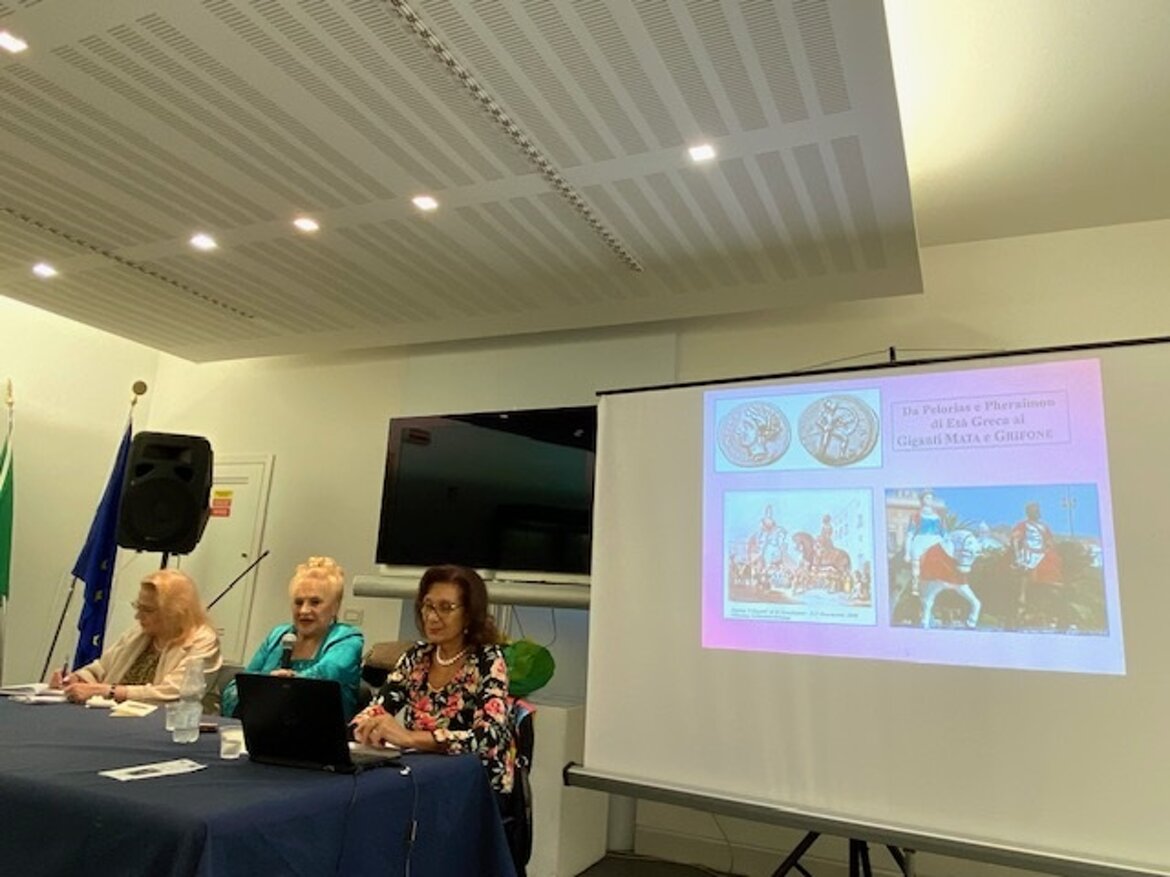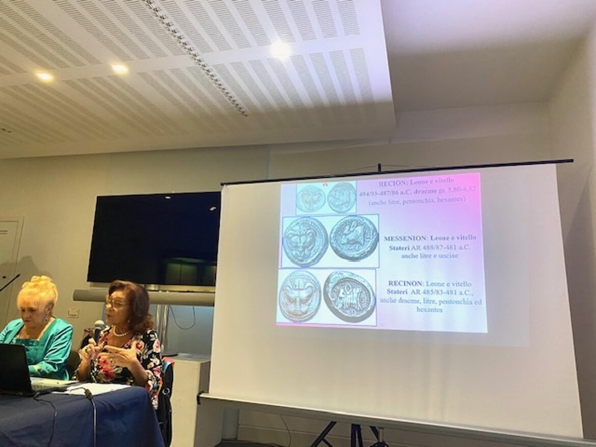 Mercoledì 16 ottobre 2024 presso il Museo Archeologico Nazionale di Reggio Calabria, lo stesso Museo e il Centro Internazionale Scrittori della Calabria hanno promosso la conferenza: “Miti dello Stretto: la Ninfa Pelorias, la ‘Gigantessa’ che difendeva il territorio messinese, dalle monete di Messana (461-288 a. C.) al folklore della ‘Gigantessa’ Mata, fondatrice della città”. Dopo l’intervento iniziale di Loreley Rosita Borruto, presidente del Cis della Calabria, ha introdotto l’incontro Paola Radici Colace, già professore ordinario di Filologia Classica, Dipartimento di Civiltà Antiche e Moderne, Università di Messina, presidente onorario e direttore scientifico del CIS. Con il contributo di slides ha relazionato Maria Caccamo Caltabiano, già Prof. Ordinario di Numismatica greca e romana, Dipartimento di Civiltà Antiche e Moderne, Università di Messina, componente del Comitato Scientifico del CIS. La Ninfa Pelorias era una dea di gigantesca natura, figura leggendaria che difendeva il territorio dello Stretto. Secondo la tradizione, era una creatura straordinaria legata alla bellezza e alla forza della natura. Il suo culto era particolarmente diffuso a Messina a partire già dall’VIII sec. a. C.. L’immagine della Ninfa Pelorias appare nelle monete coniate nella Zecca di Messana, i suoi capelli arrotolati sulla nuca sono intrecciati di rose di palude e trattenuti da un serto di canne.