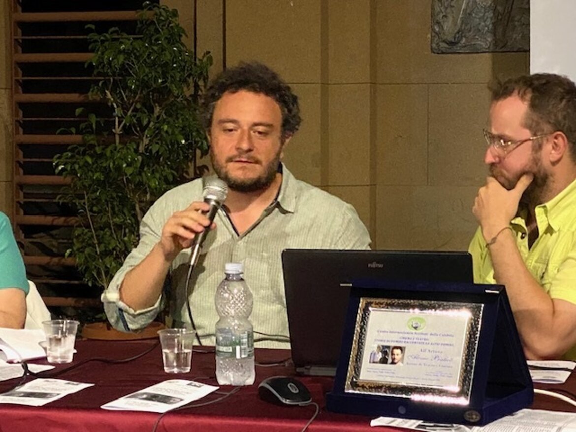 Il Centro Internazionale Scrittori della Calabria e la chiesa degli artisti di Reggio Calabria, giovedì 01 agosto, nella suggestiva cornice del Chiostro San Giorgio, nell’ambito della serie di incontri sul “Cinema e teatro, si è svolta la manifestazione “storie di uomini raccontate ad altri uomini. Dialogo con l’attore Alessio Praticò”. Ha introdotto la manifestazione Loreley Rosita Borruto, presidente del Cis della Calabria, e ha dialogato con l’attore Alessio Praticò, l’artista Alessandro Allegra, responsabile del ciclo del CIS “Quando l’arte incontra il suo immaginario”. Una carriera in ascesa quella di Alessio Praticò, diviso tra cinema, fiction e teatro. Durante l’incontro sono stati proiettati spezzoni di film interpretati dall’attore reggino. Dopo il diploma alla Scuola del Teatro Stabile di Genova, Alessio inizia la sua attività di attore teatrale, recitando in diverse compagnie. A partire dal 2013, avviene anche il suo debutto nel cinema, partecipando a numerosi film. Nel 2015 nel ruolo di Carlo Cosco ex compagno della testimone di giustizia Lea Garofalo è il protagonista del film “Lea” di Marco Tullio Giordana. Nella serie “Il miracolo” di Nicolò Ammanniti, con la regia di Francesco Munzi, Lucio Pellegrini e lo stesso Ammaniti, Alessio Praticò è uno degli attori protagonisti. Fa parte del cast cinematografico con un ruolo importante nel film “Il traditore” di Marco Bellocchio e partecipa alla serie televisiva “Il Cacciatore” andata in onda su Rai 2, per la regia di Stefano Lodovichi e Davide Marengo. Nato a Reggio Calabria, Alessio Praticò prima di iniziare la sua carriera artistica si è laureato in Architettura presso l’Università Mediterranea di Reggio Calabria.